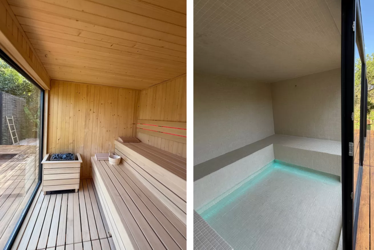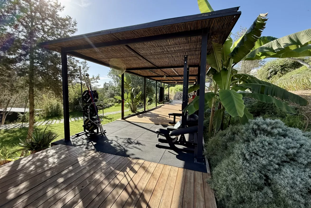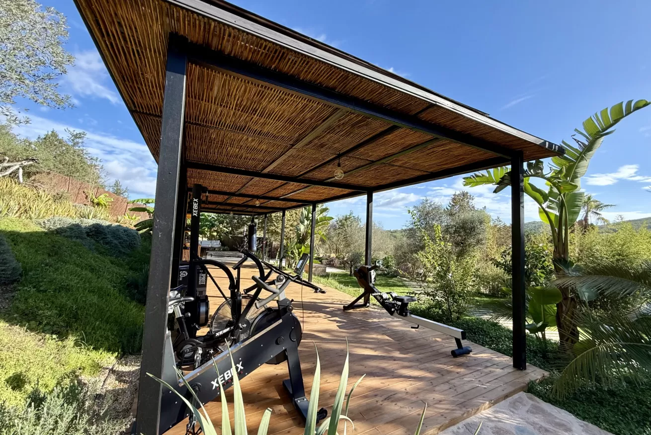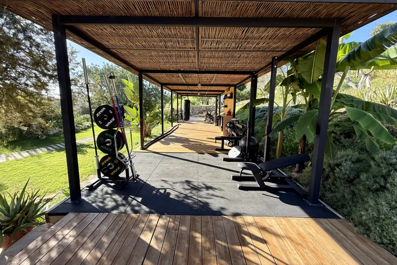 The property includes a professional outdoor gym, sauna and hammam, plunge pools, a ceremonial teepee, vegetable garden, BBQ area and home cinema.