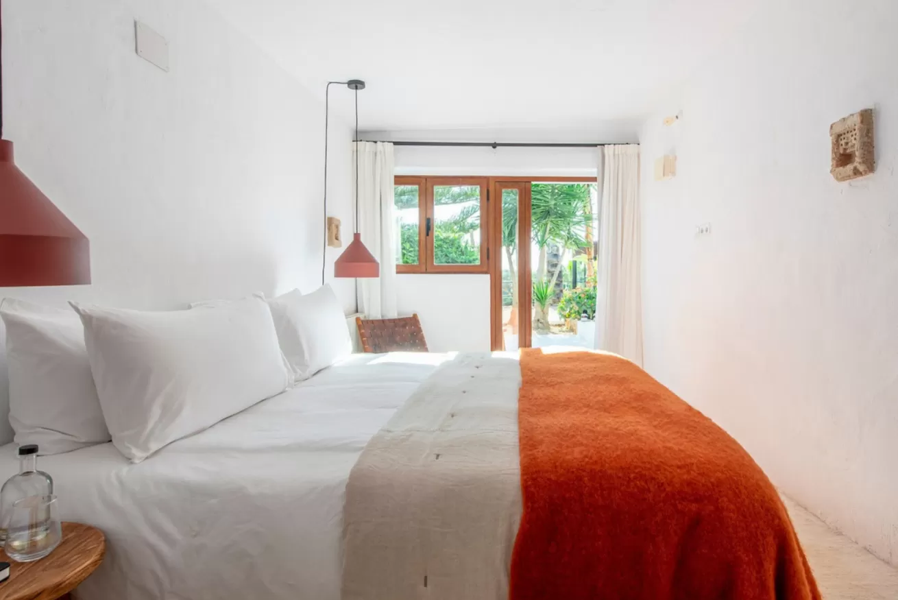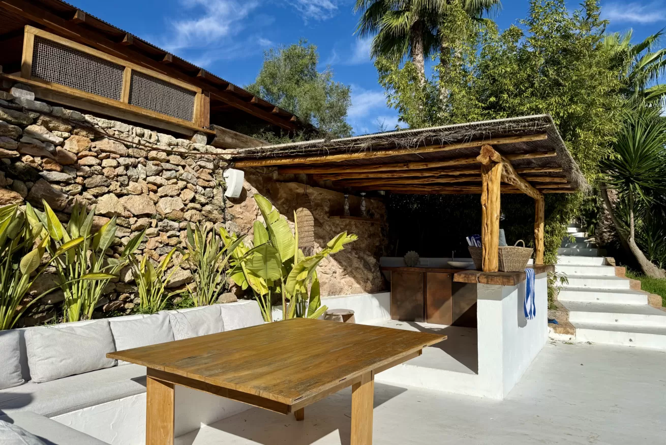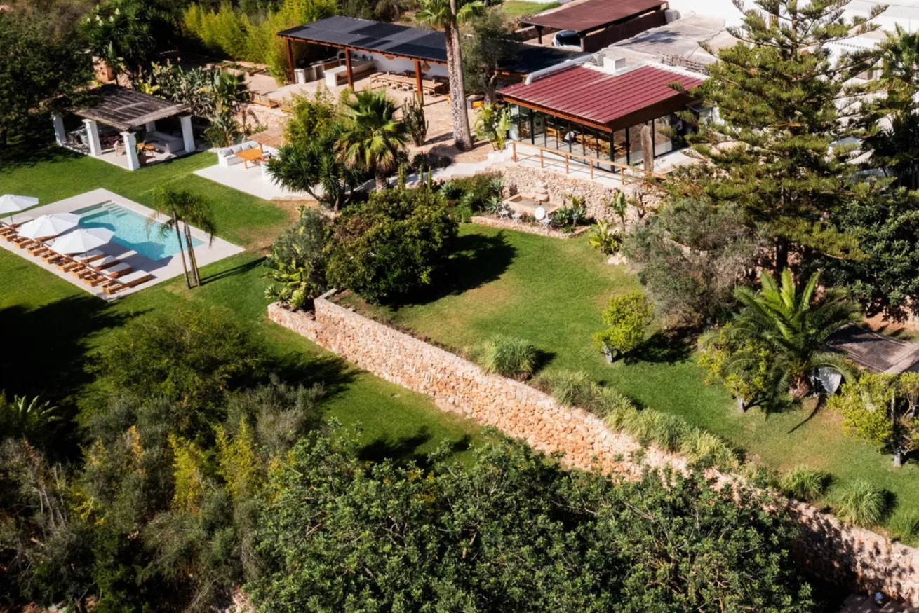 Nestled atop a serene hill near Santa Gertrudis, this 200-year-old finca blends traditional Ibicenco architecture with global artisanal touches from Bali, India, Nepal, Tibet and Africa.