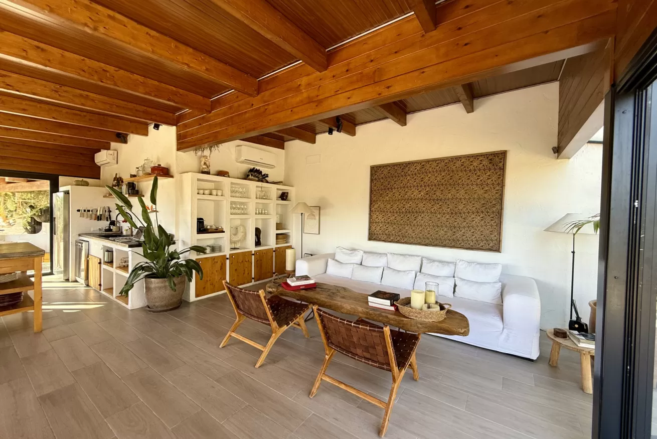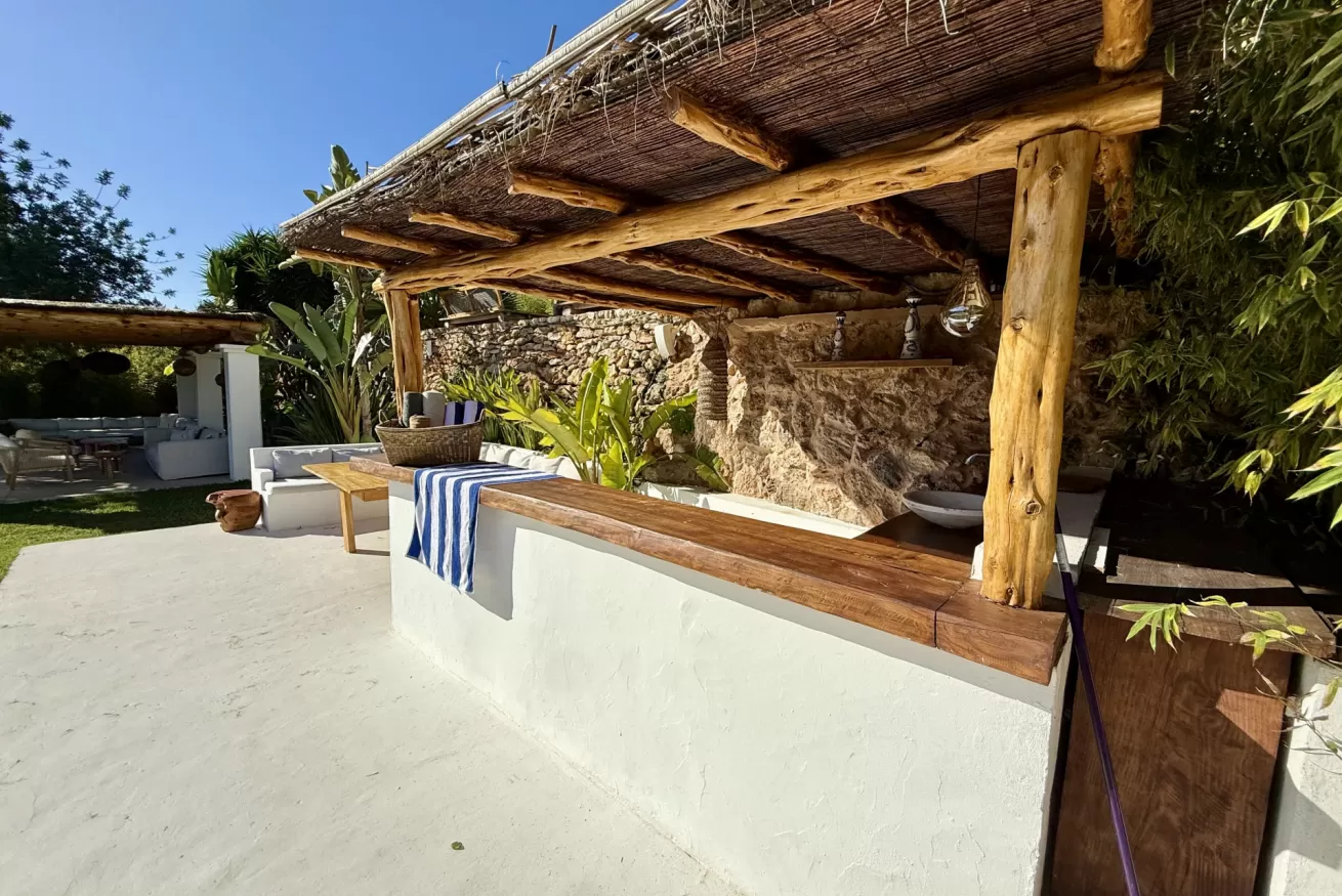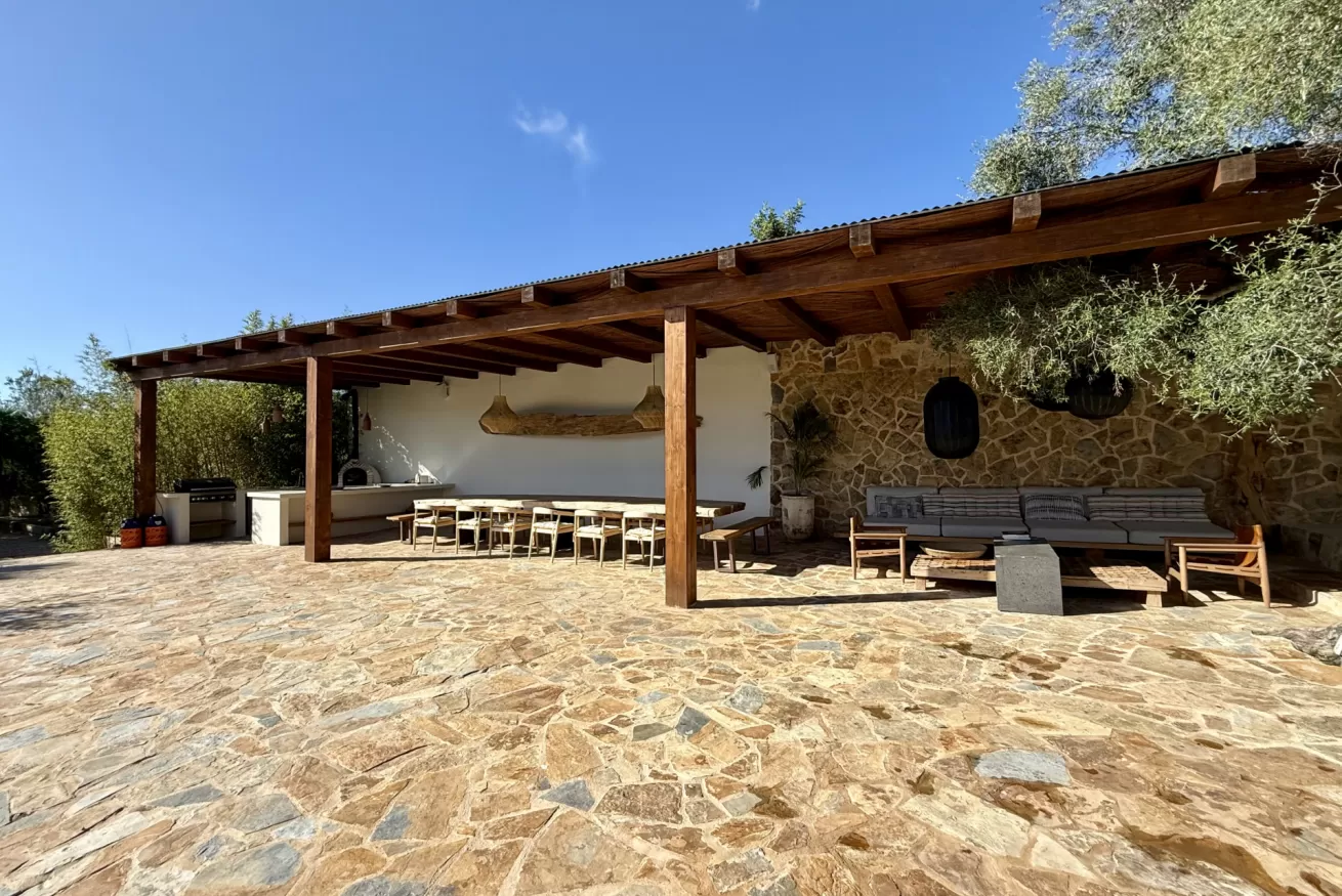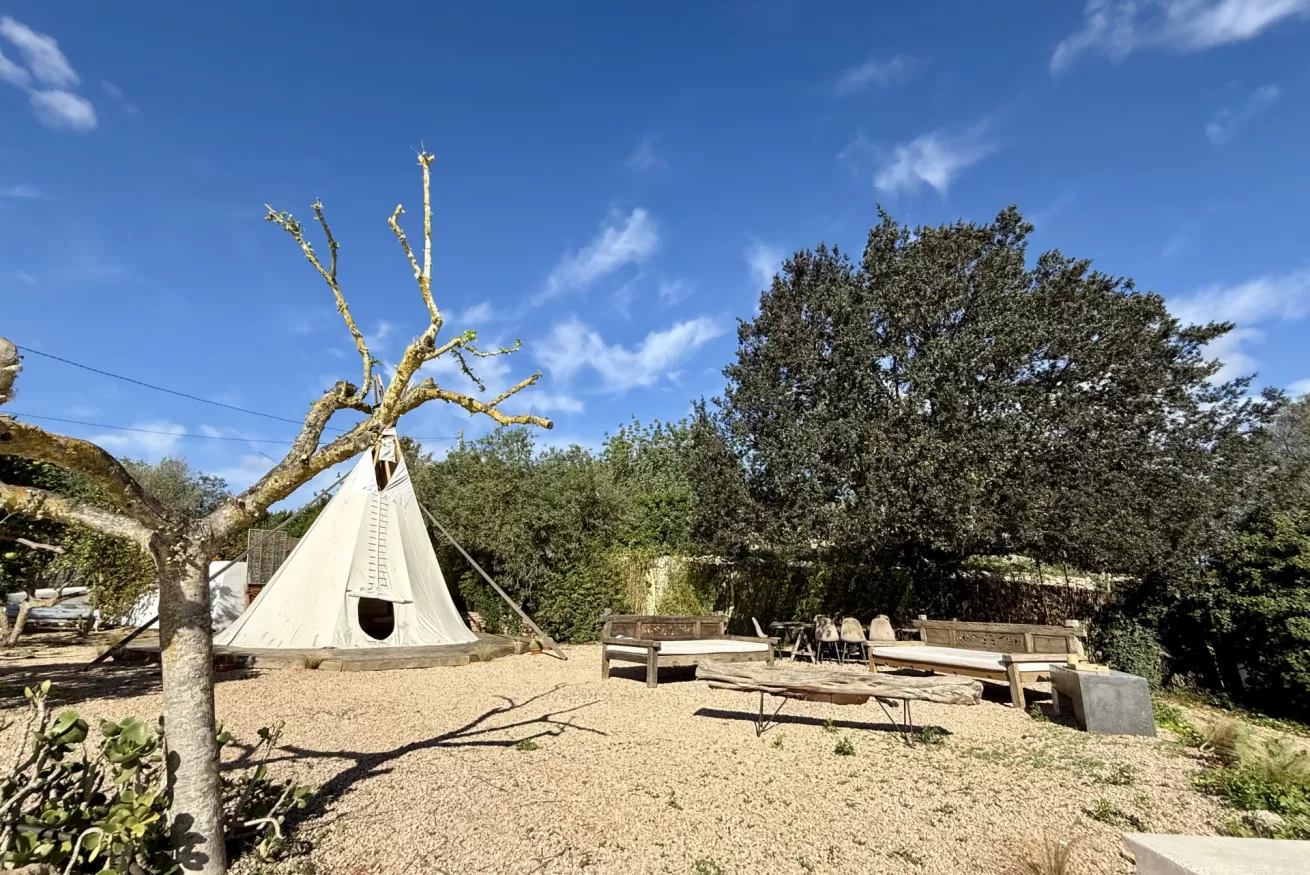 Nestled atop a serene hill near Santa Gertrudis, this 200-year-old finca blends traditional Ibicenco architecture with global artisanal touches from Bali, India, Nepal, Tibet and Africa.