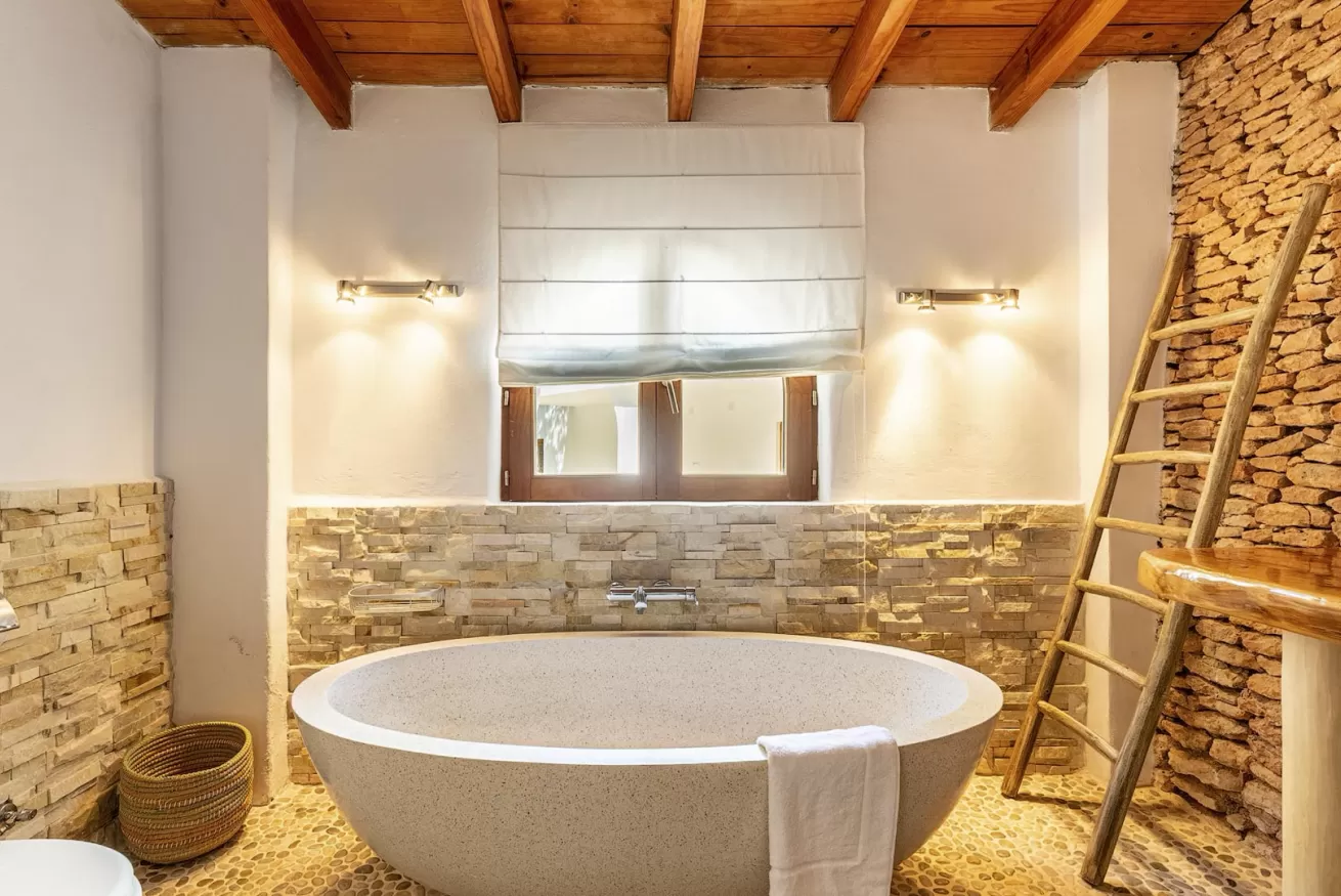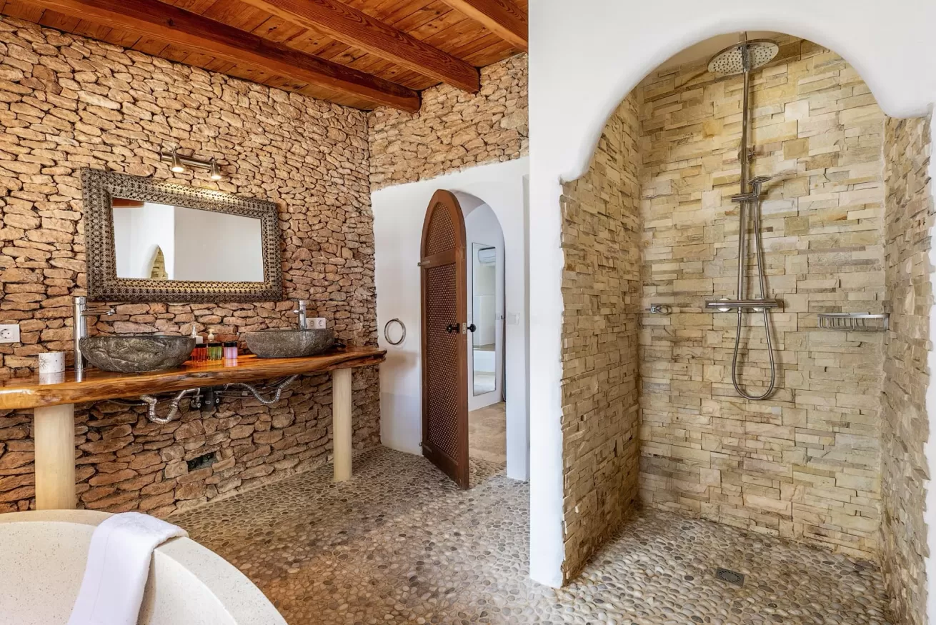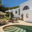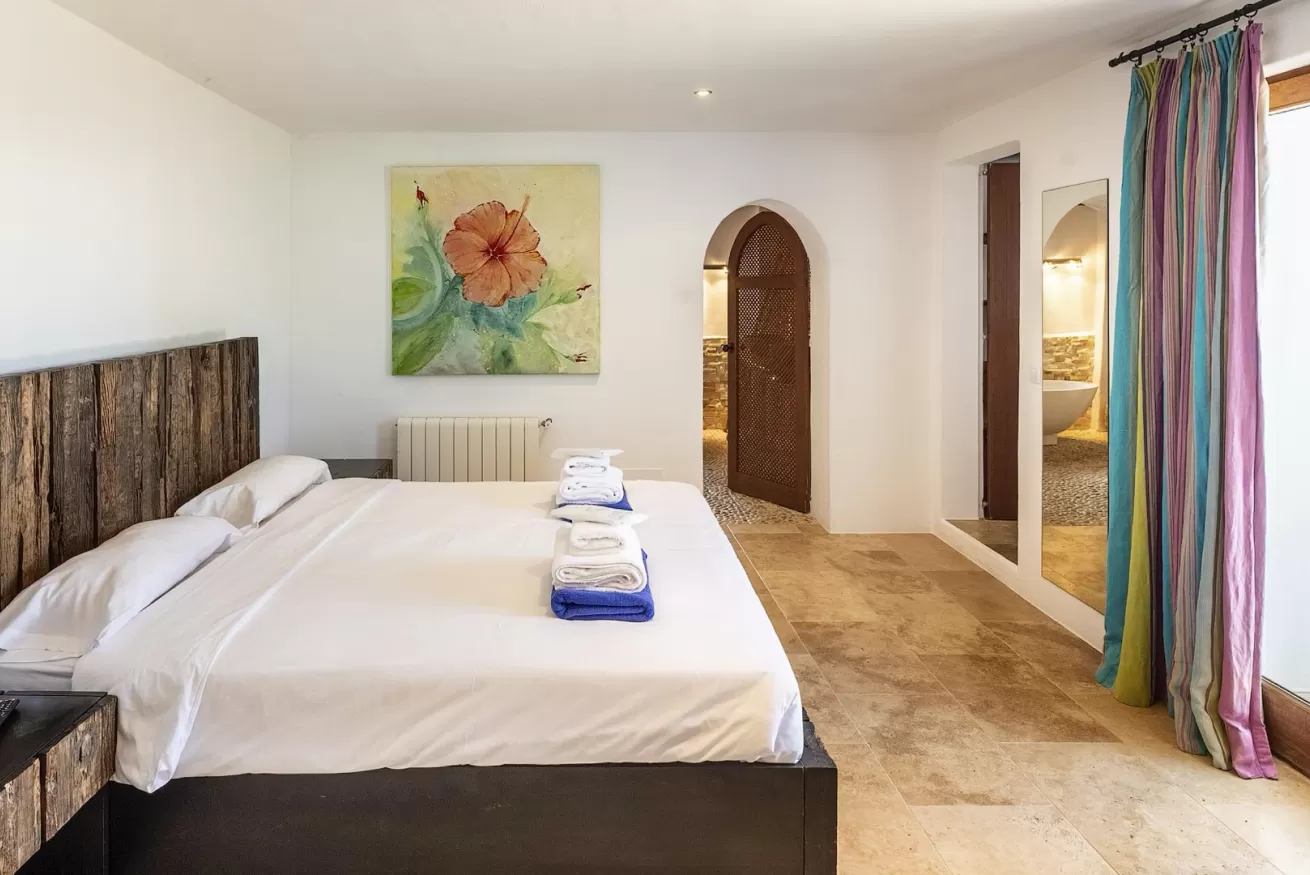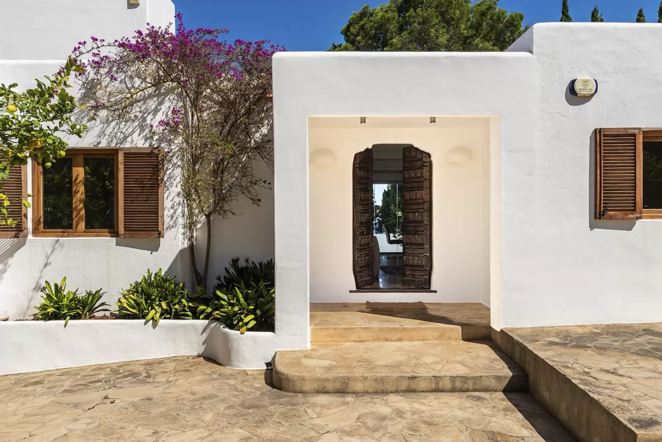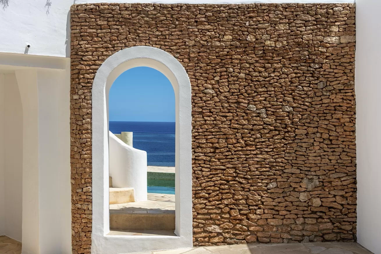 La casa sin dal primo impatto lascia completamente senza fiato: è un connubio perfetto di colori pastello che si mixano con i colori della natura circostante, rafforzato dall’utilizzo sapiente di materiali complementari, che seppur differenti le conferiscono uno stile moderno e al tempo ancorato alla tradizione architettonica ibizenca.