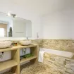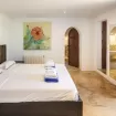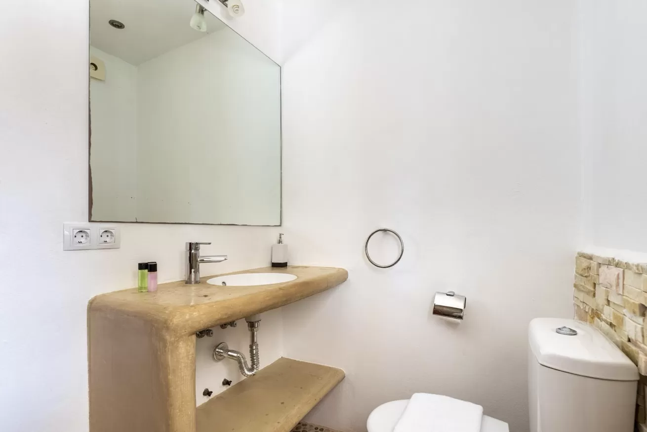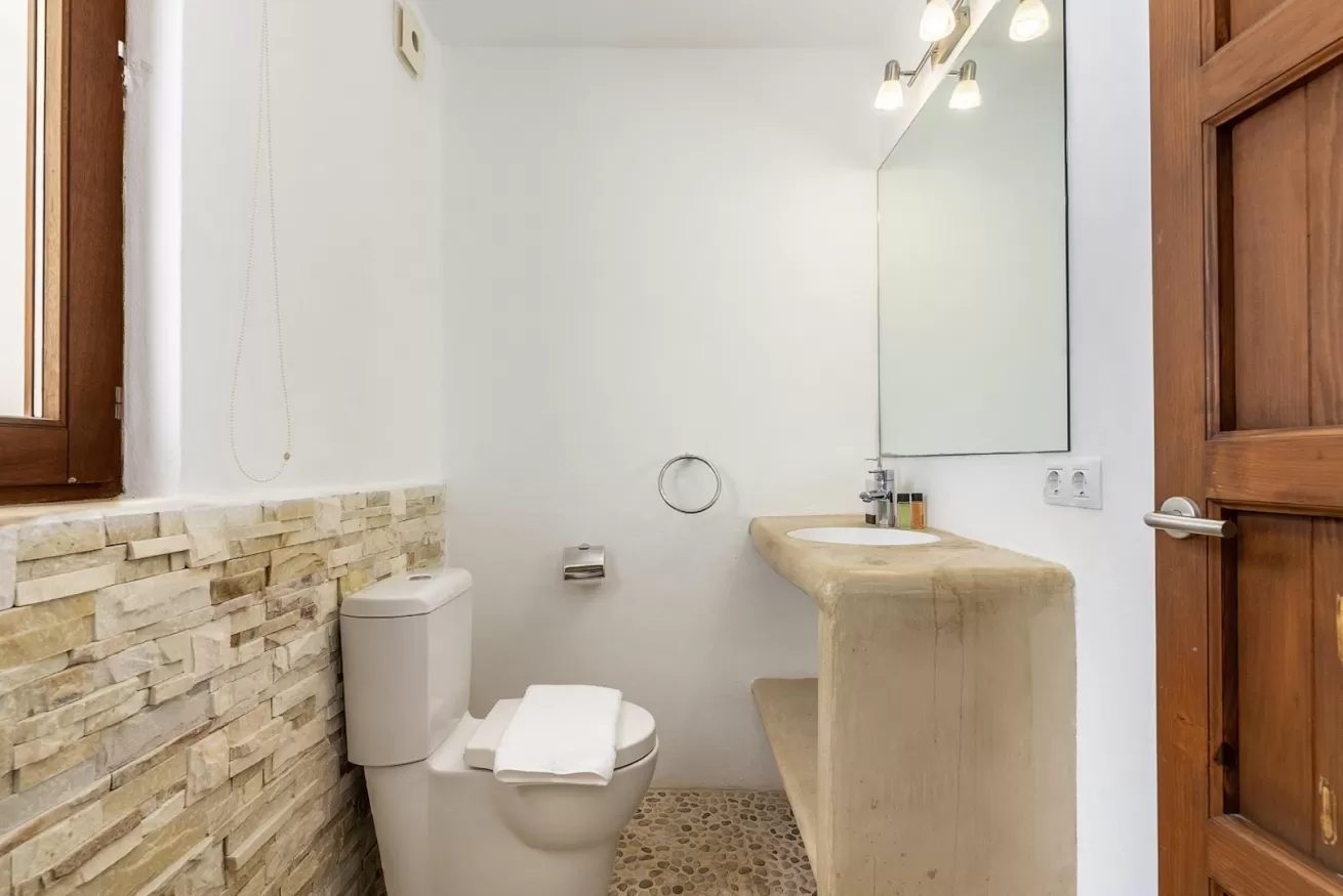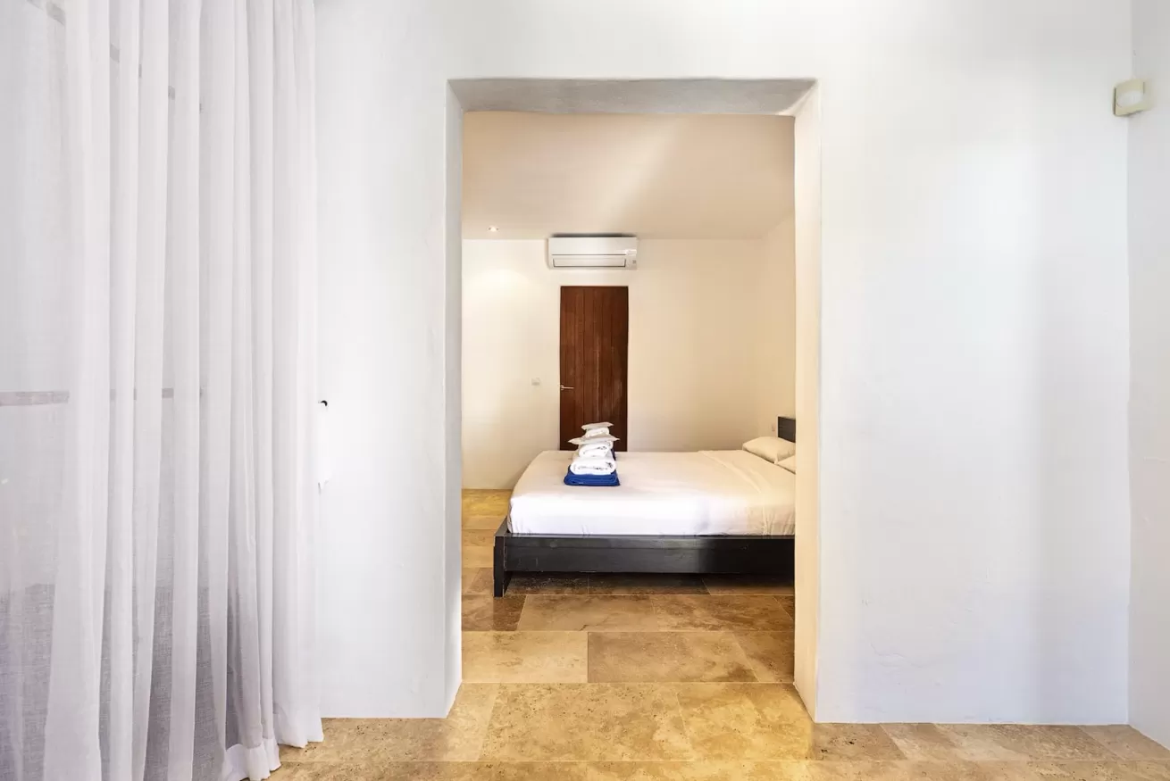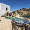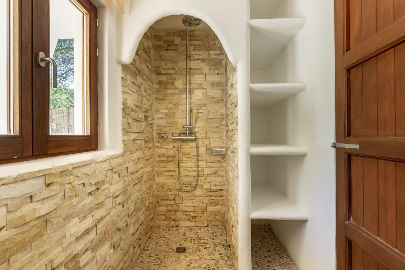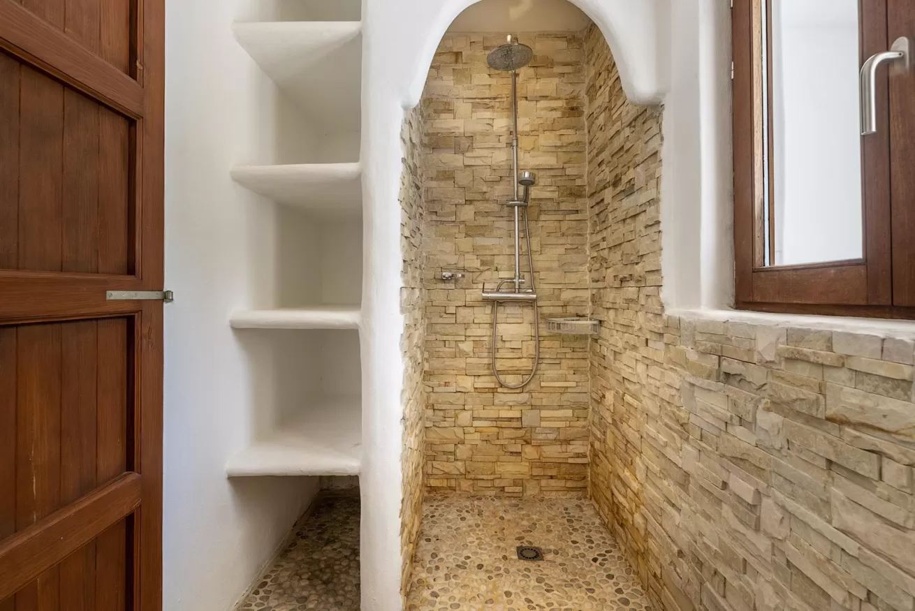 La casa sin dal primo impatto lascia completamente senza fiato: è un connubio perfetto di colori pastello che si mixano con i colori della natura circostante, rafforzato dall’utilizzo sapiente di materiali complementari, che seppur differenti le conferiscono uno stile moderno e al tempo ancorato alla tradizione architettonica ibizenca.