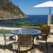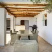 La zona outdoor è un vero e proprio sogno: una pergola con travi a vista in legno ospita una accogliente zona pranzo all’aperto e una zona chill-out, mentre più avanti la piscina circondata dai lettini e dal paesaggio sembra essere un tutt’uno con il mare che le fa da sfondo. Già questo basterebbe a renderla la location perfetta per le tue vacanze in compagnia di amici o familiari, per goderti un aperitivo al tramonto con il rumore del mare in sottofondo o una cena all’ombra lunare della pergola. Un sogno ad occhi aperti!