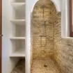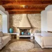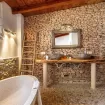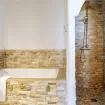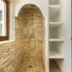 Le pareti in pietra ambrata, la predominanza del bianco e la presenza importante delle vetrate rende tutto leggero, armonico e fortemente distintivo.