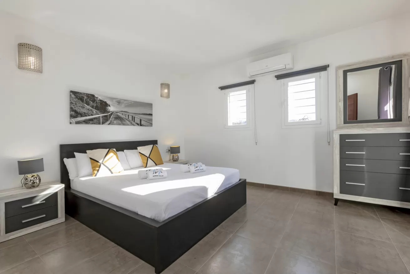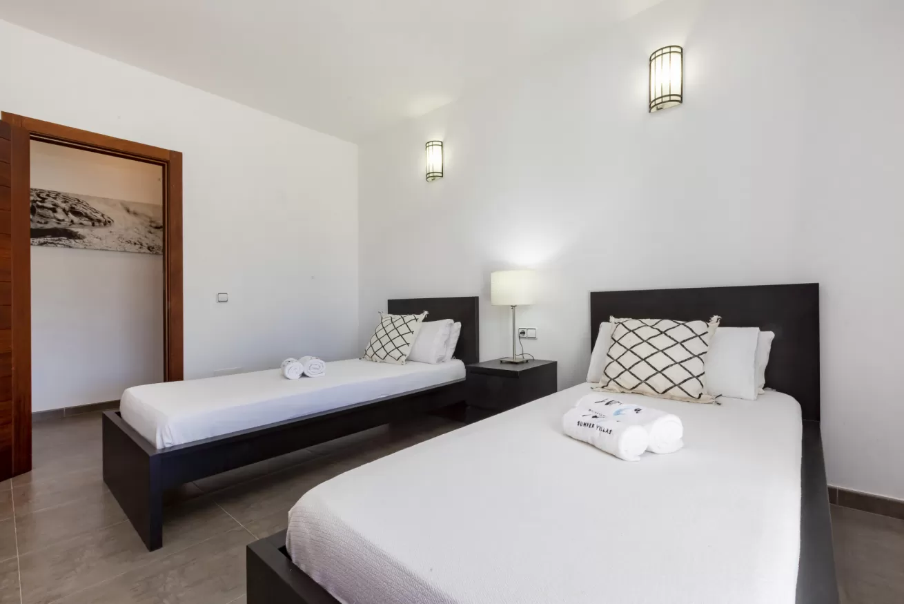 The villa accommodates up to 10 guests and consists of five spacious bedrooms (three double bedrooms and two twin bedrooms) and five bathrooms, two of which are en suite.