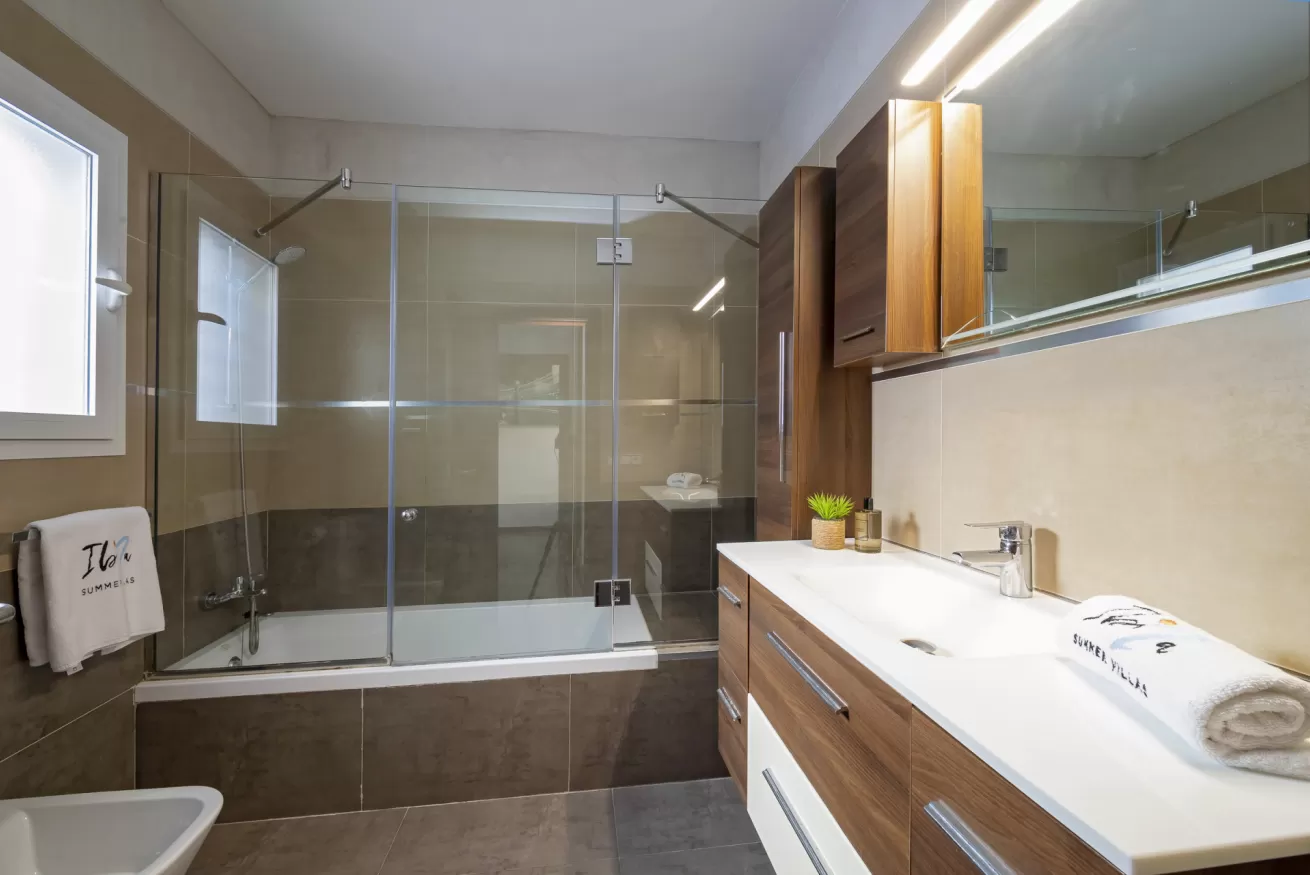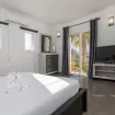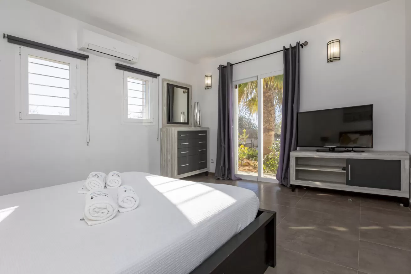 All bedrooms feature wardrobes, television, air conditioning, and direct access to the garden, offering a truly relaxing and independent experience. High-speed internet is available throughout the property.