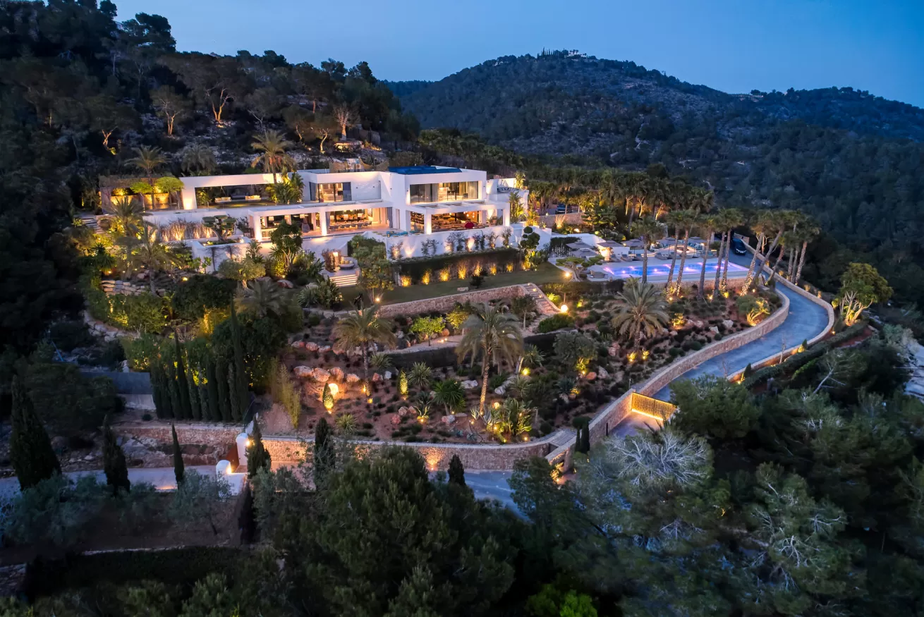Located in the prestigious area of S’Estanyol, just 5 minutes by car from Ibiza’s city center and the Marina, Villa Khun is an exclusive residence that combines elegance, comfort, and breathtaking views. Elevated 130 meters above sea level, the villa offers a 300° view of the Mediterranean Sea, Ibiza Town, and Formentera, providing spectacular scenery at every moment of the day.