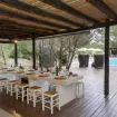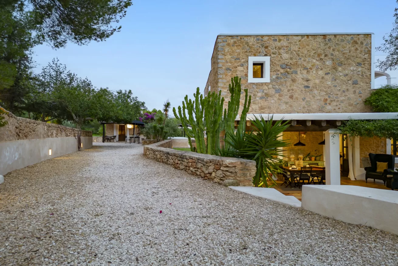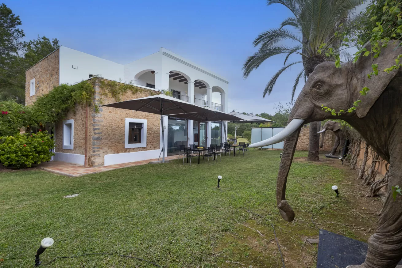 Blending traditional Ibizan charm with refined modern design, Villa Marama features typical stone walls, warm natural tones, and unique artistic touches—like the striking elephant-shaped hedges in the garden—creating an atmosphere of constant discovery.