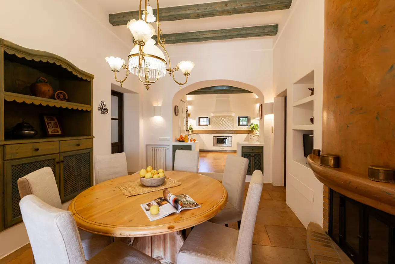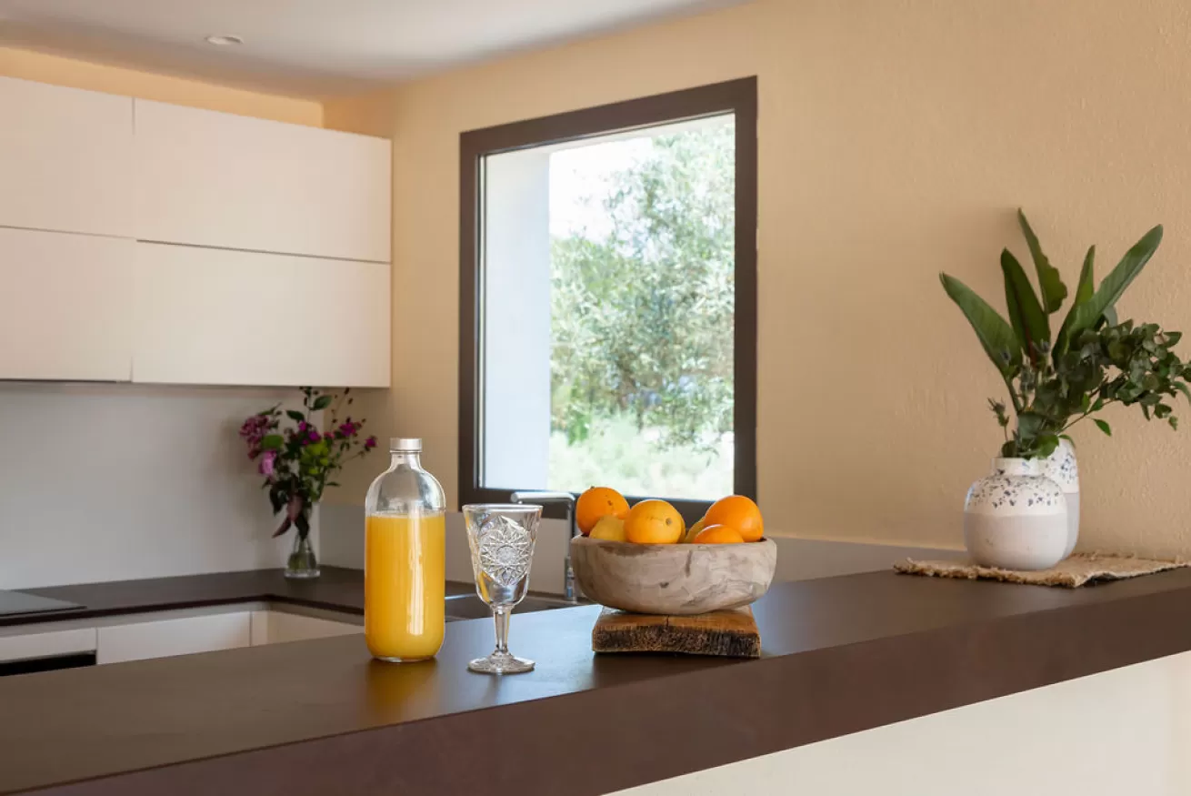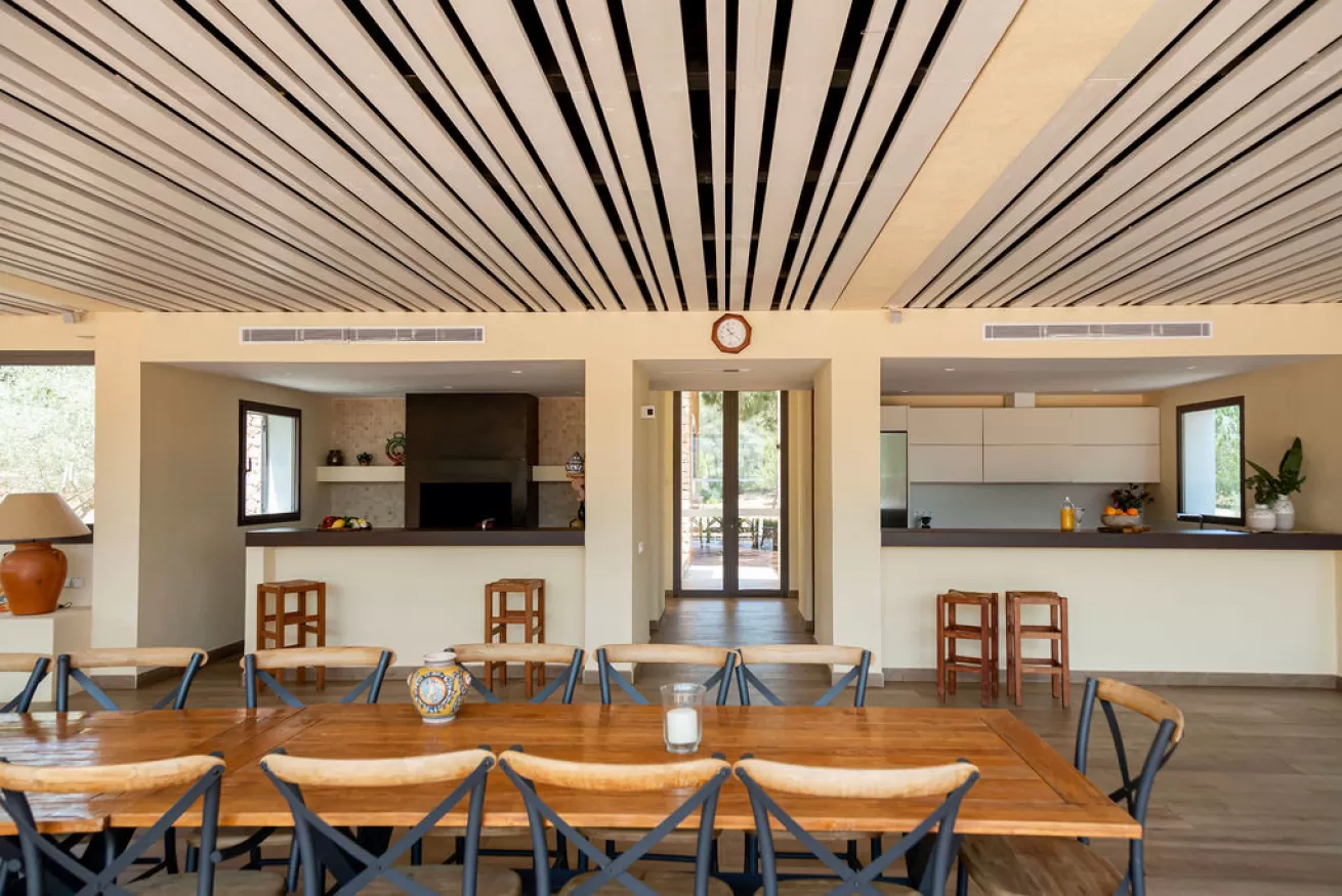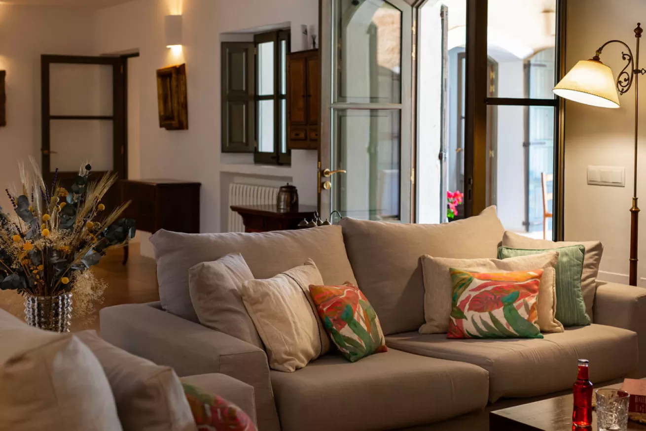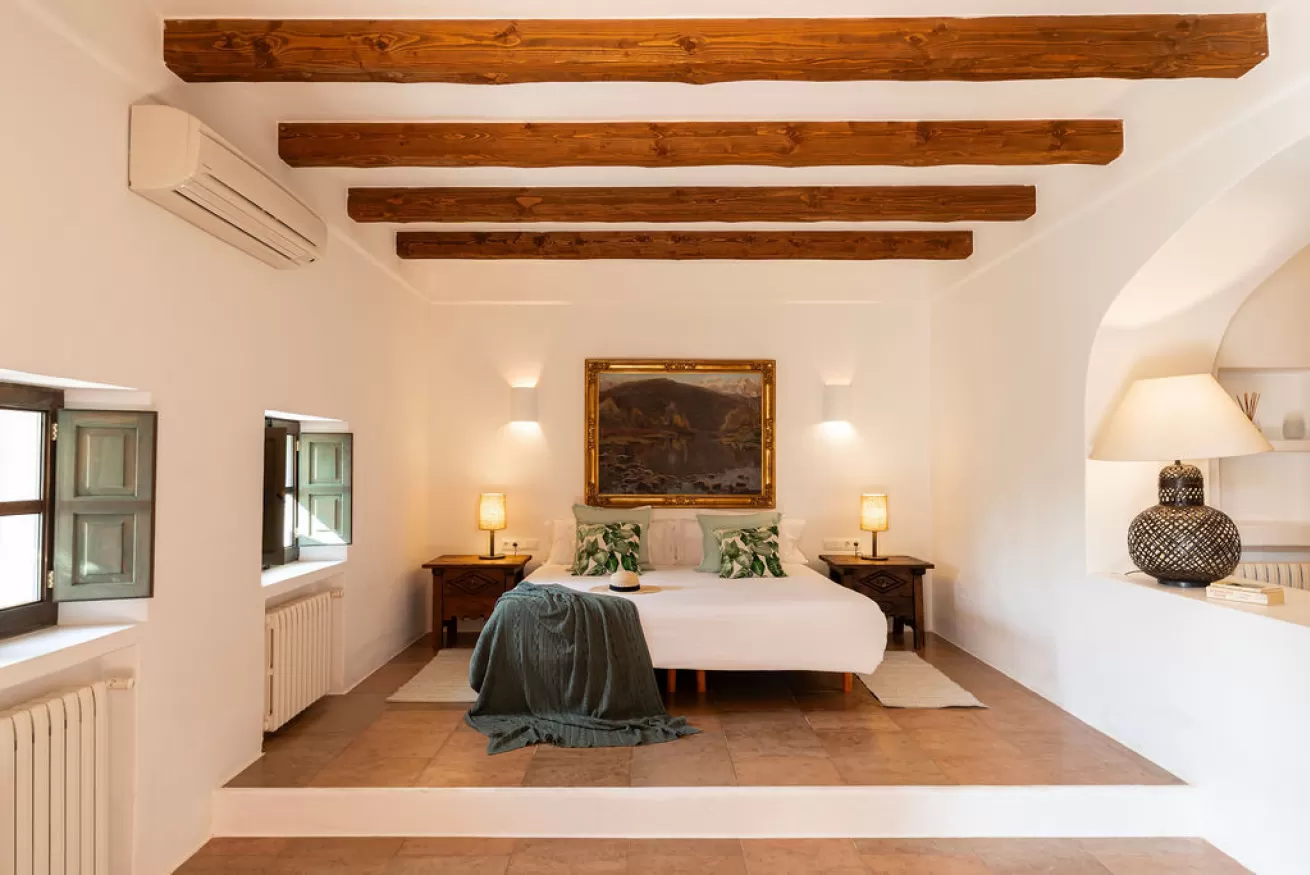 The accommodation includes six exclusive suites, each with its own fully equipped bathroom. Three of them are spacious and sunlit master suites, designed to offer total rest and relaxation. From every window, panoramic views invite you to breathe deeply and embrace the serenity of the landscape.