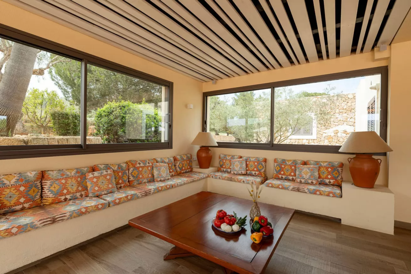 Built in 2006 upon the foundations of a traditional home, the villa preserves the rustic essence of Ibicenco architecture, reimagined with sophistication and care. Every detail has been thoughtfully crafted to ensure a stay where peace, privacy, and connection with nature take center stage.